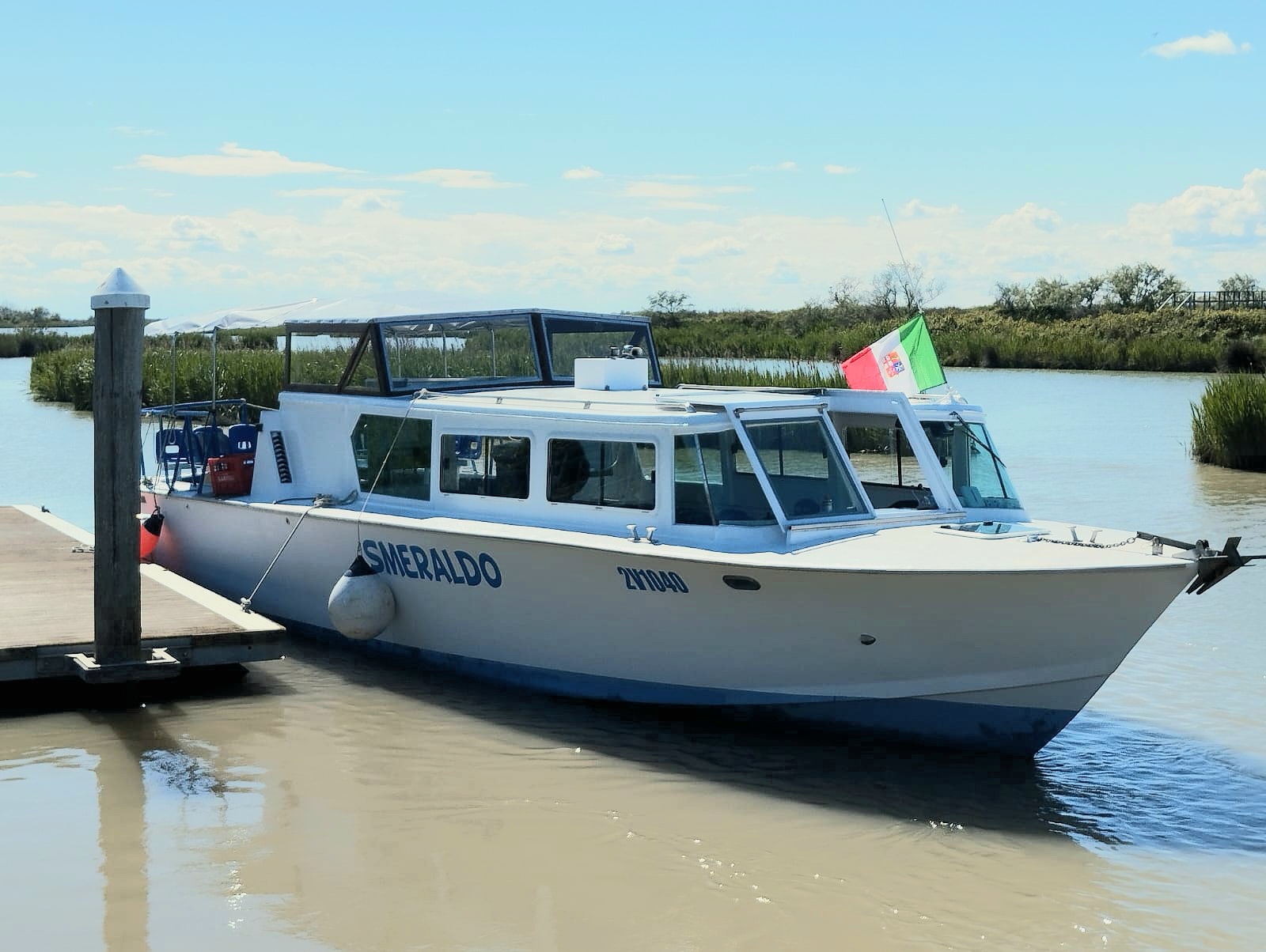 imbarcazioni diverse per soddisfare ogni esigenza di viaggio. Oggi navighiamo soprattutto nella parte più a sud del Delta: la foce del Po di Goro, la Sacca di Goro, le valli di Gorino e, per i più curiosi, anche il mare aperto con uscite dedicate all’avvistamento dei cetacei. Uno dei fiori all’occhiello della nostra offerta è il birdwatching: escursioni silenziose e affascinanti a bordo di una tipica barca lagunare, pensate per avvicinarsi ai luoghi più suggestivi dal punto di vista faunistico. Accanto alle attività naturalistiche, proponiamo anche esperienze di pesca sportiva: dallo sgombro alla palamita, dalla traina al bolentino, fino alla cattura di pesci serra e lecci, per chi ama vivere il mare da protagonista.